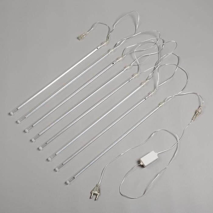 Гирлянда «Нить» 3 м с насадками «Сосульки 45 см», IP44, УМС, прозрачная нить, 36 LED, свечение белое с эффектом стекания, 12 В