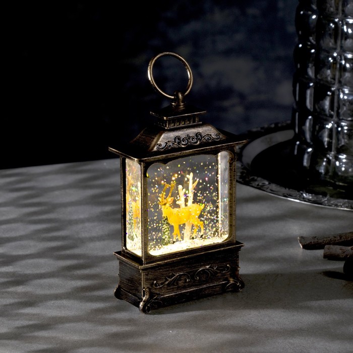 Светодиодная фигура «Фонарь с оленем» 7.6 × 13.5 × 3.2 см, пластик, блёстки, батарейки AG13х3, свечение тёплое белое