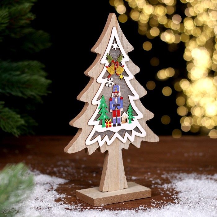 Новогодний декор с подсветкой «Ёлка и щелкунчик» 13 × 4,5 × 22 см