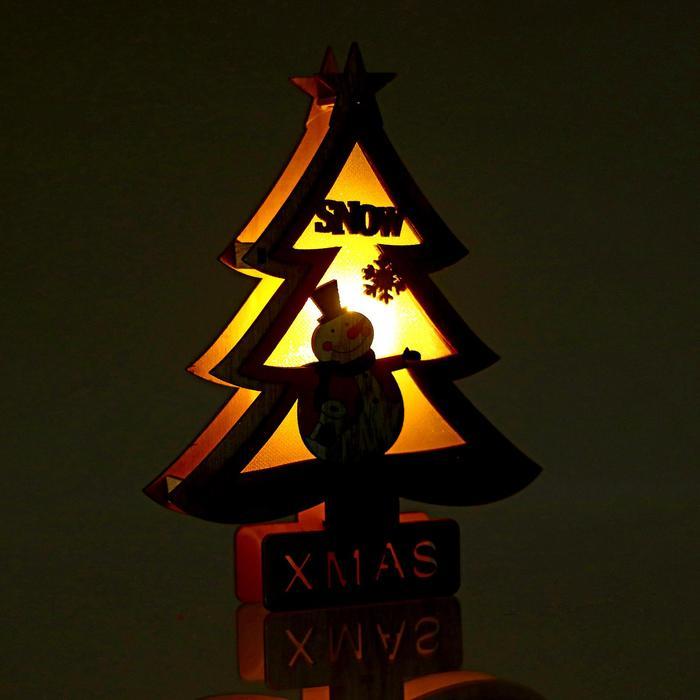 Новогодний световой декор настольный «Ёлка и снеговик» 15×20×2 см