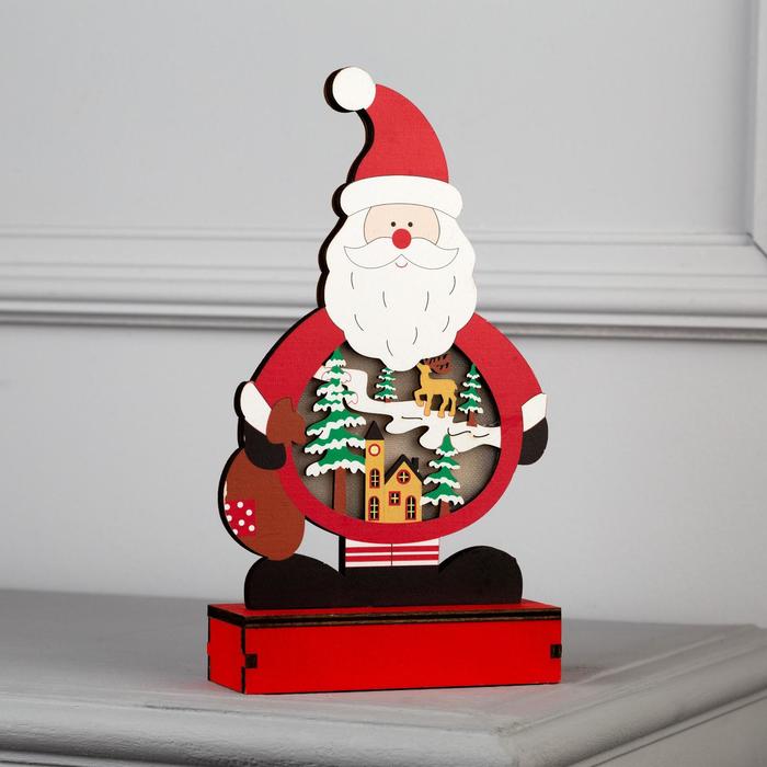 Светодиодная фигура «Дед Мороз» 13 × 14 × 5 см, дерево, батарейки ААх2 (не в комплекте), свечение тёплое белое