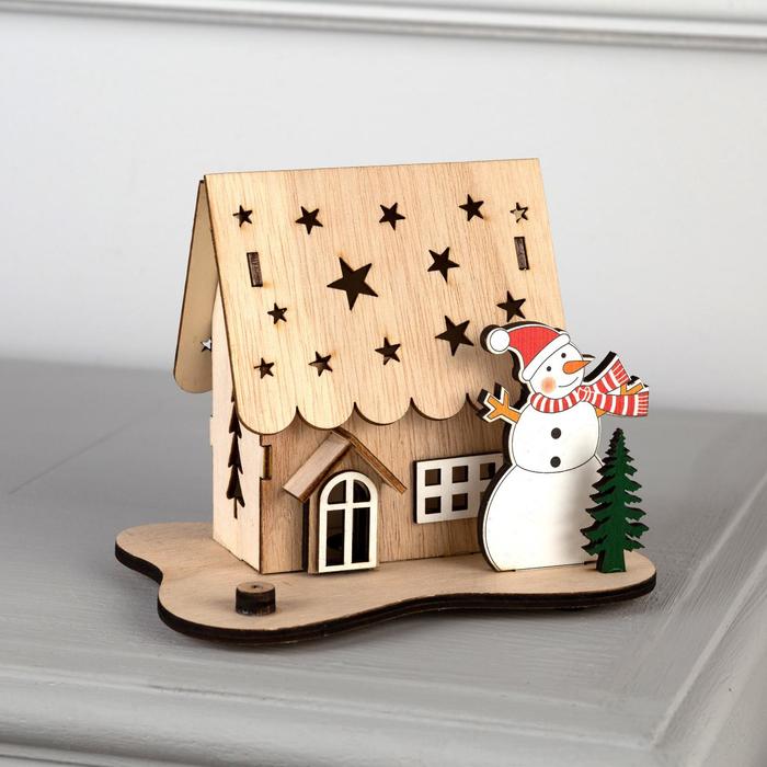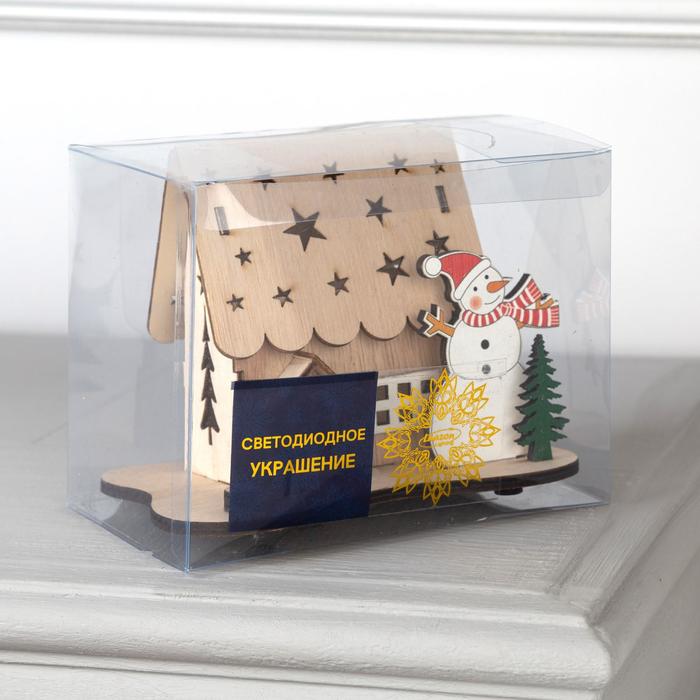 Светодиодная фигура «Дом со снеговиком» 11 × 15 × 3 см, дерево, батарейки LR41х3, свечение тёплое белое