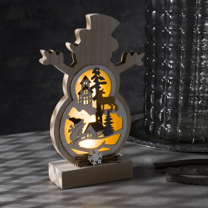 Светодиодная фигура «Снеговичок» 12 × 23 × 5 см, дерево, батарейки АААх2 (не в комплекте), свечение тёплое белое
