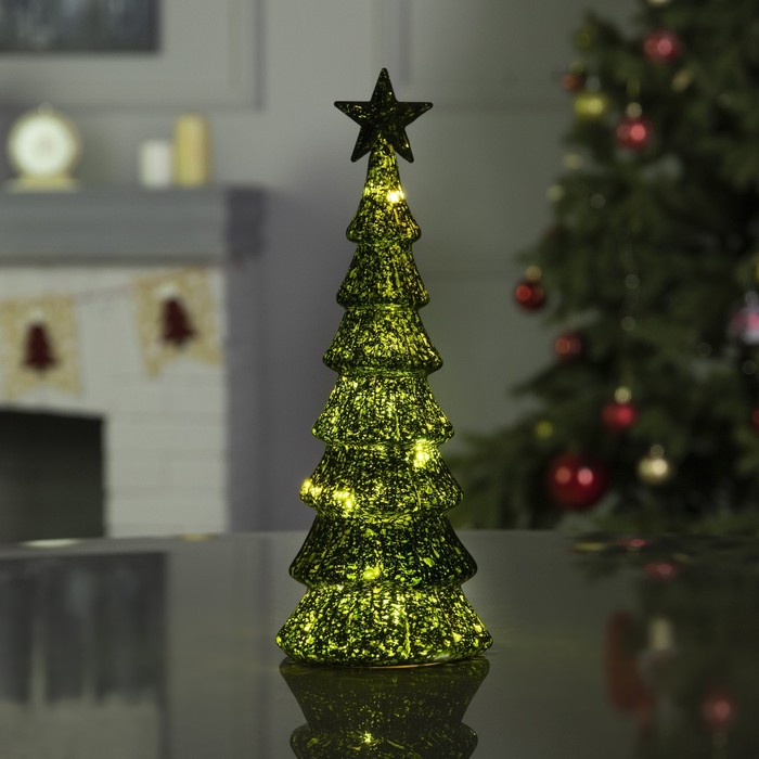 Светодиодная фигура «Зелёная ёлка» 10 × 26 × 10 см, стекло, батарейки АААх3 (не в комплекте), свечение тёплое белое