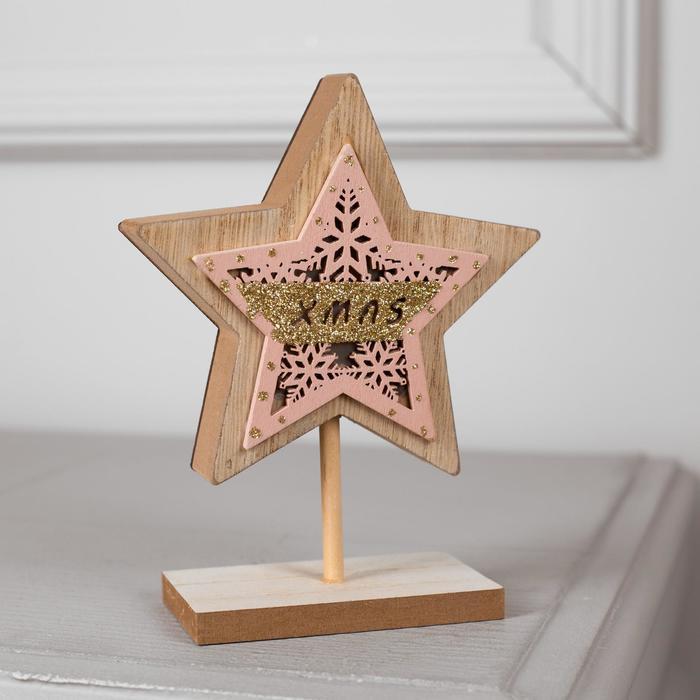 Светодиодная фигура «Звезда» 12 × 15.5 × 5 см, дерево, батарейки CR2032, свечение тёплое белое