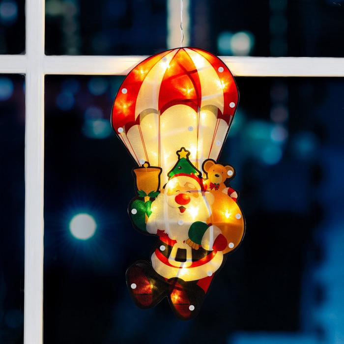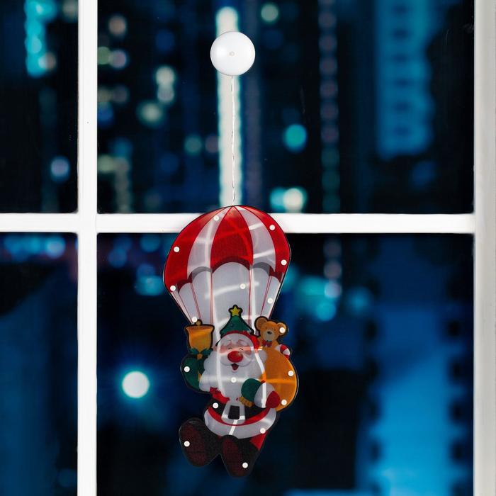 Светодиодная фигура на присоске «Дед Мороз на парашюте» 20 × 42 см, пластик, батарейки АААх3 (не в комплекте), свечение тёплое белое