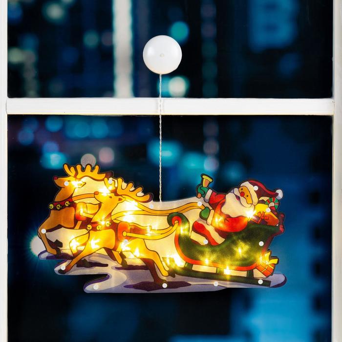 Светодиодная фигура на присоске «Дед Мороз в санях» 44 × 25 см, пластик, батарейки АААх3 (не в комплекте), свечение тёплое белое