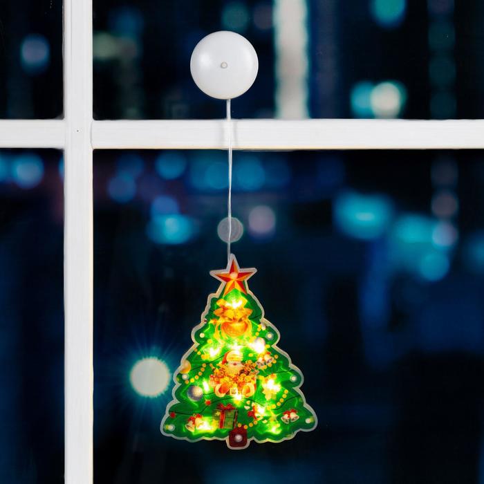Светодиодная фигура на присоске «Ёлка» 16 × 20 см, пластик, батарейки АААх3 (не в комплекте), свечение тёплое белое