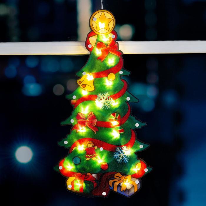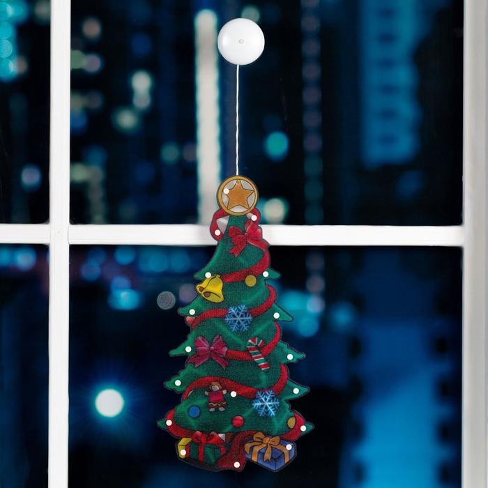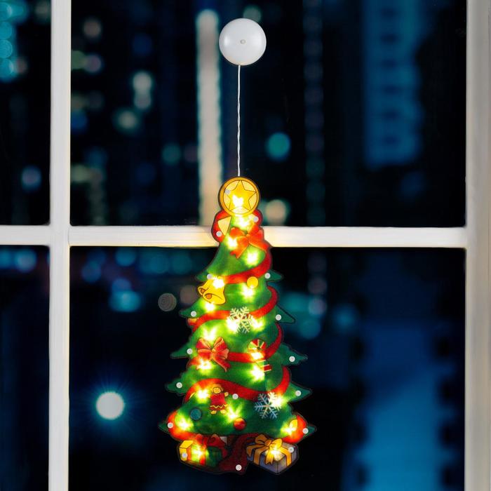 Светодиодная фигура на присоске «Ёлка» 24 × 45 см, пластик, батарейки АААх3 (не в комплекте), свечение тёплое белое