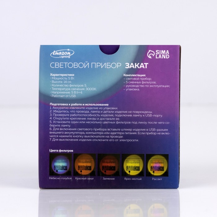 Световой прибор «Закат», 5 картриджей, свечение тёплое белое, 5 В