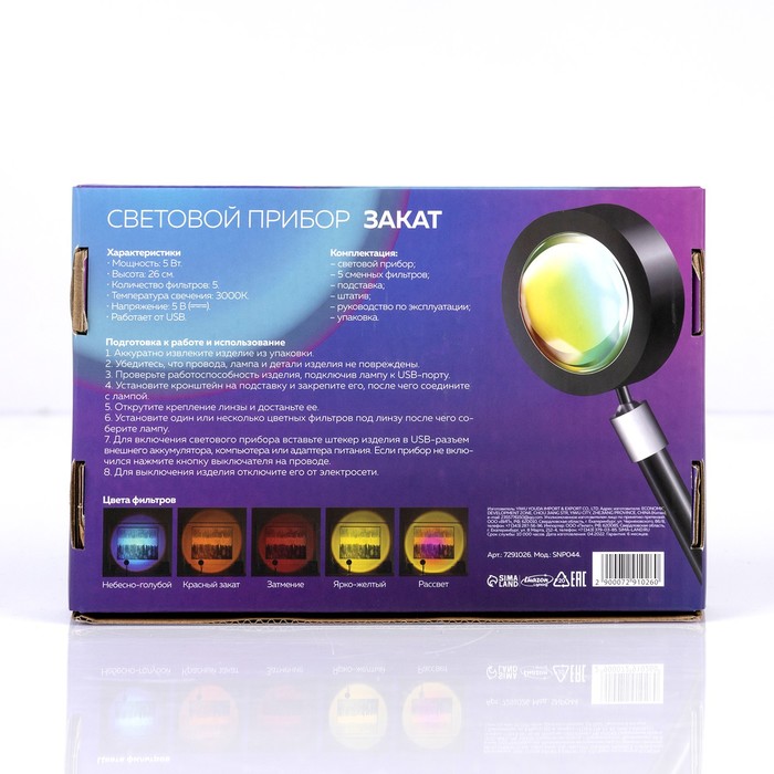 Световой прибор «Закат» на ножке, 5 картриджей, свечение тёплое белое, 5 В