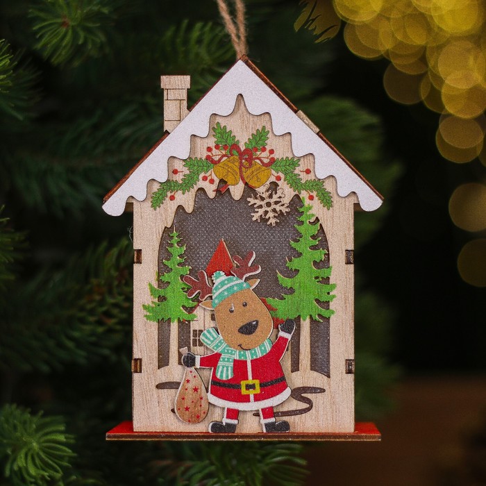Новогодний декор с подсветкой «Новогодний домик» 9 × 6 × 12,5 см