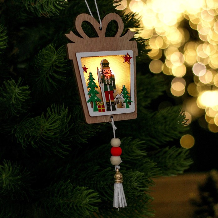 Новогодний декор с подсветкой «Щелкунчик и подарок» 8,5 × 1 × 11см