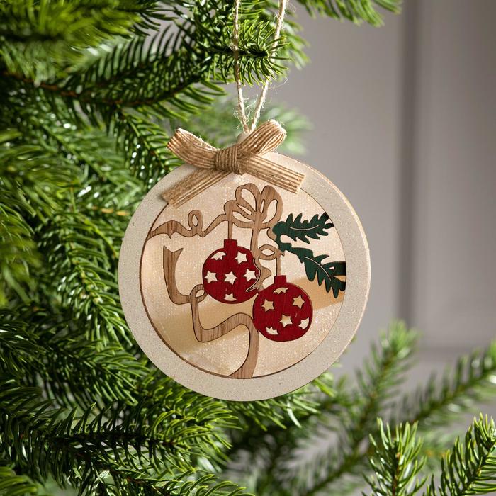 Ёлочная игрушка «Шар с веткой», от батареек, свечение тёплое белое