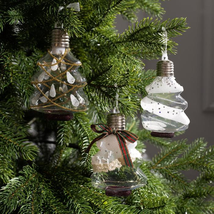 Набор ёлочных шаров «Ёлочки белые» 3 шт., батарейки, 5 LED, свечение белое