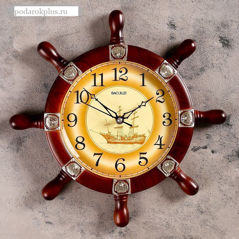 Часы интерьерные настенные "Штурвал" - оригинальные и стильные; для моряка, капитана, мореплавателей - настоящая ностальгия!