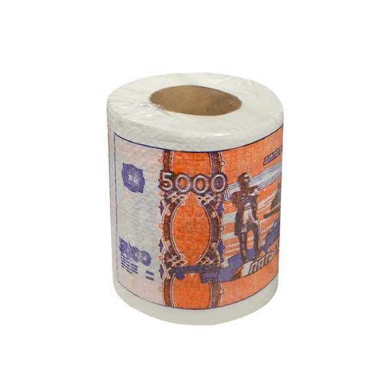 Туалетная бумага с изображением 5000р купюр используется по назначению, развеет досуг и никогда не даст соскучиться!