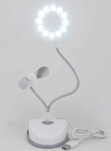 - вентилятор и лампа имеют гибкую металлическую ножку для удобного расположения