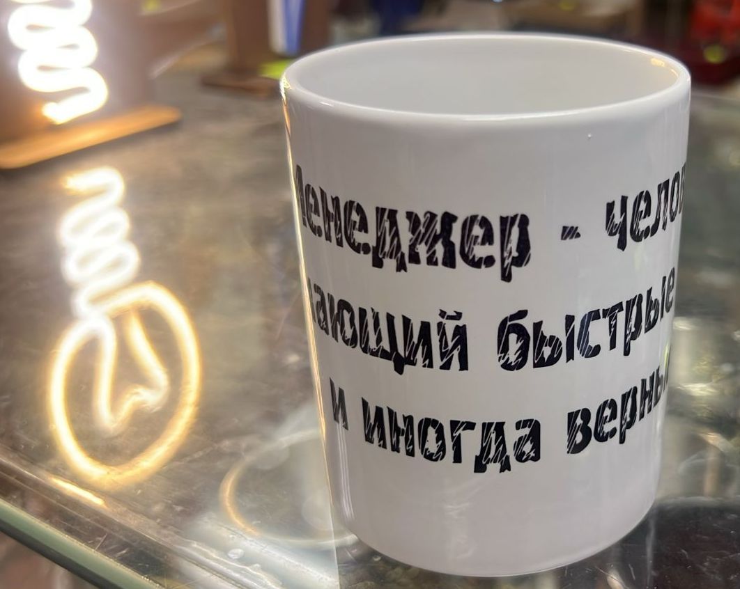 Кружка-мотиватор «Менеджер — человек, принимающий быстрые решения и иногда верные» создана для тех, кто не боится действовать. Она станет напоминанием о силе уверенности и умении двигаться вперёд, даже когда путь кажется непростым.