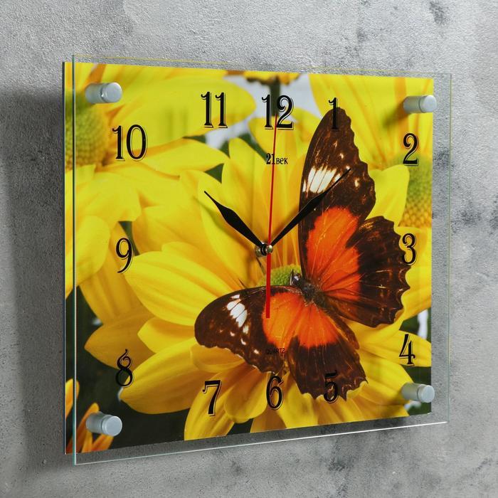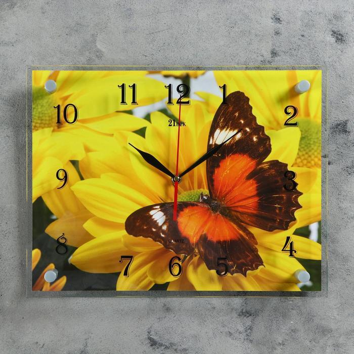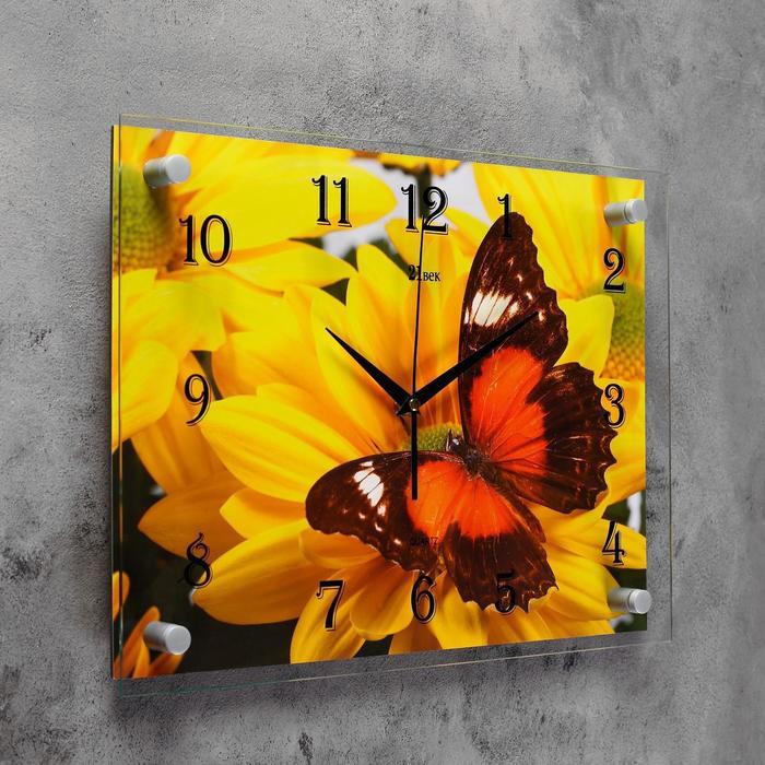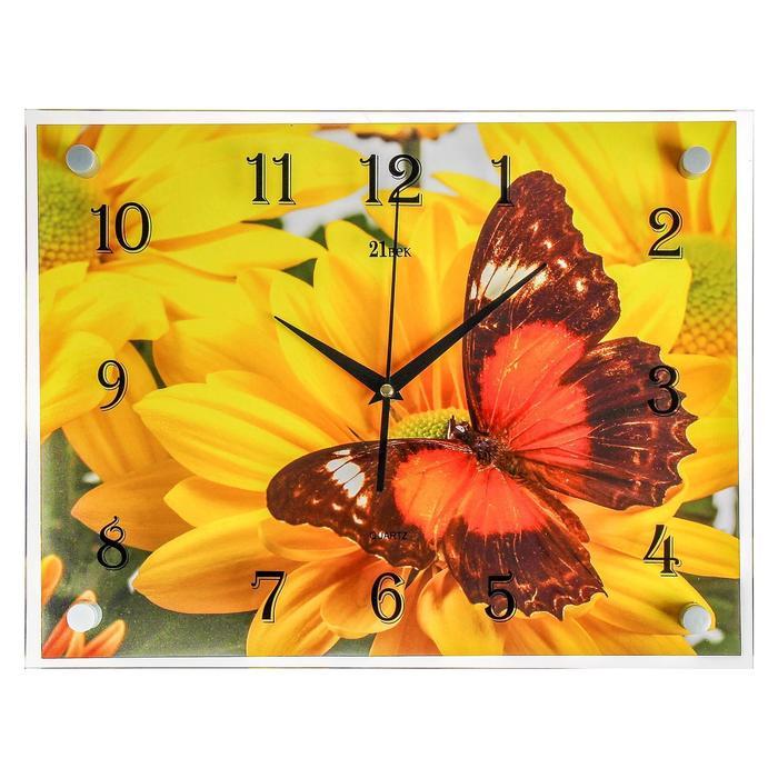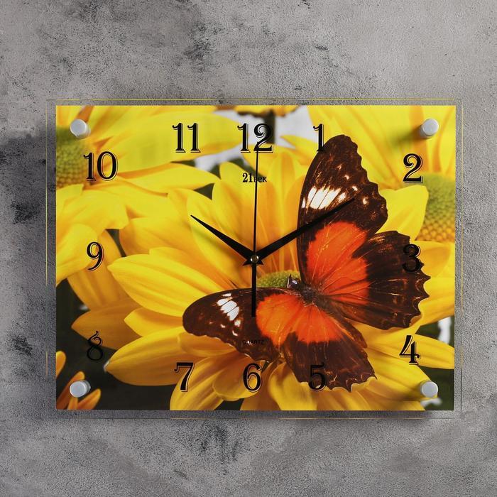 Часы настенные, серия: Животный мир, "Бабочка на гербере", 30х40 см, микс