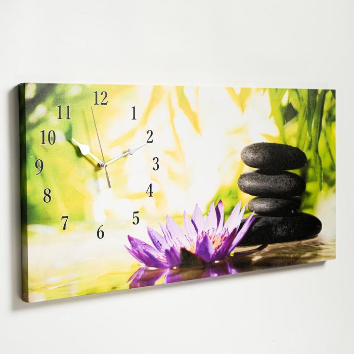 Часы настенные, на холсте, серия: Цветы, "Цветы и камни", 40х76 см, стрелки микс