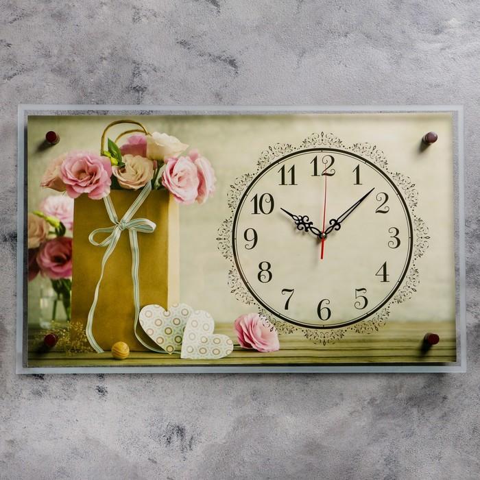 Часы настенные, серия: Цветы, "Цветочки в пакетике", микс 36х60 см