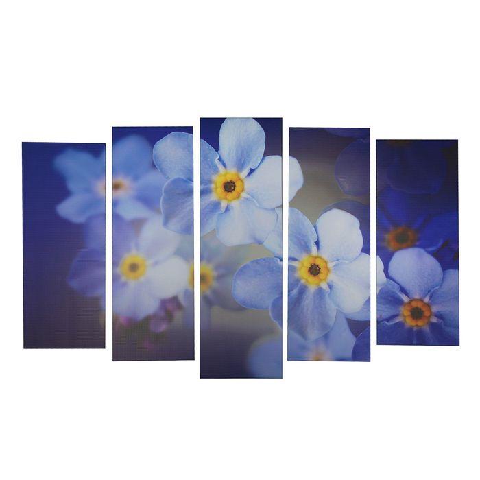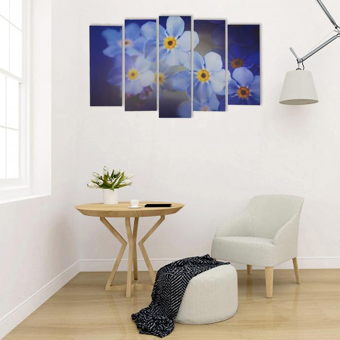 Картина модульная на подрамнике "Голубые цветы" 2шт-21*54; 2шт-21*61; 1шт-21*68см 105*68