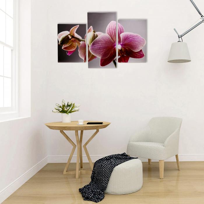 Картина модульная на подрамнике "Крупная орхидея" 99*65 см визуально расширит пространство. Это идеальное решение для небольших комнат, коридоров и холлов. Дополните убранство стильным интерьерным акцентом!