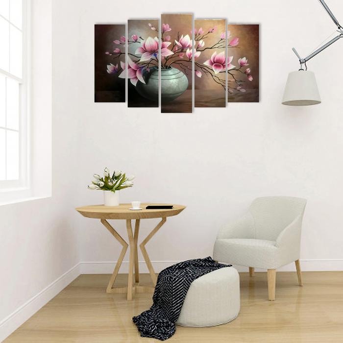 Картина модульная на подрамнике "Цветы в вазе" 2шт-25*71; 2шт-25*63; 1шт-25*80 125*80 см