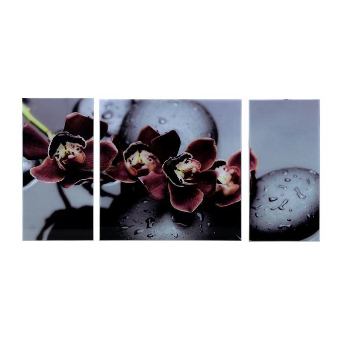 Картина модульная на стекле "Черная Орхидея" 2-25*50, 1-50*50 см, 100*50 см