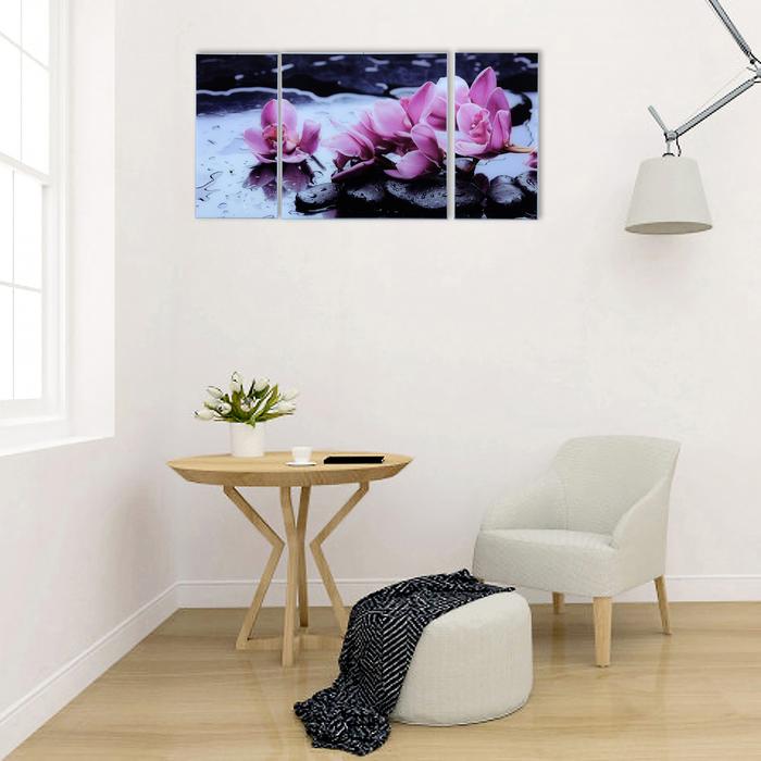 Картина модульная на стекле "Орхидеи" 2-25*50, 1-50*50 см, 100*50см