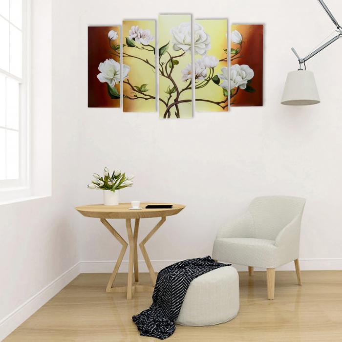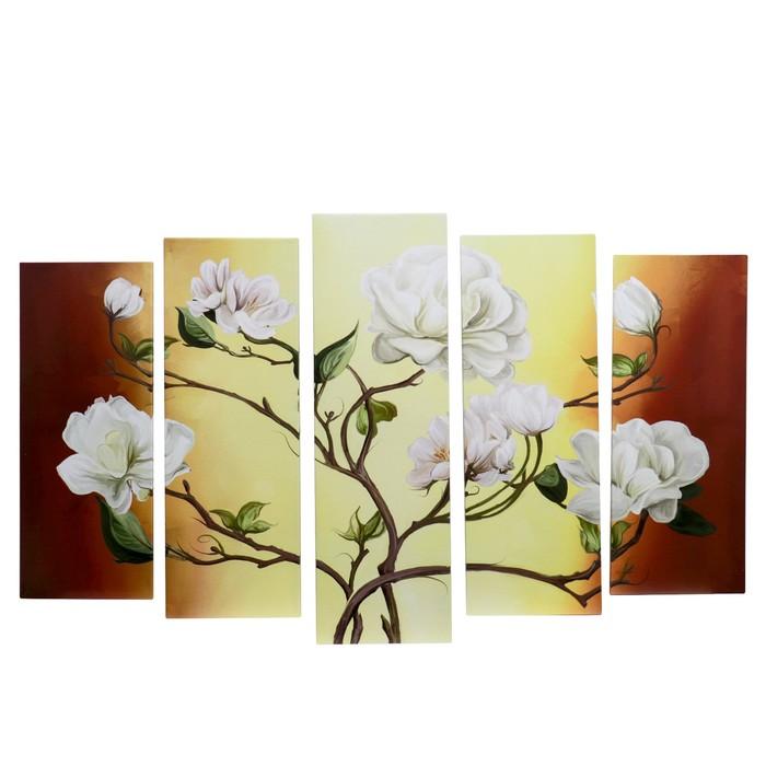 Модульная картина на подрамнике "Цветы на ветках" 2-25*63; 2-25*71; 1-25*80: 125х80