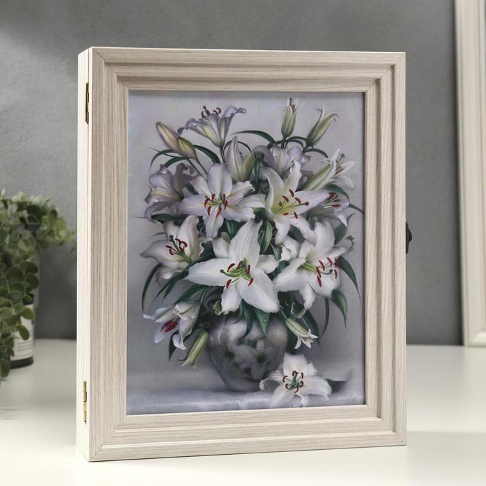 Ключница пирамида "Букет белых лилий" Выбеленный дуб 30х25х5 см МИКС