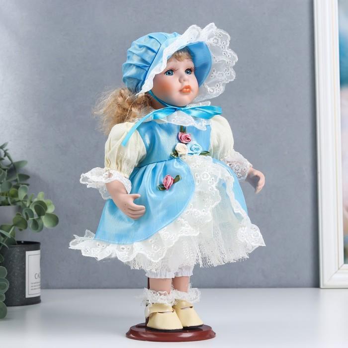 Кукла коллекционная керамика "Алиса в голубом платьице и чепчике" 30 см