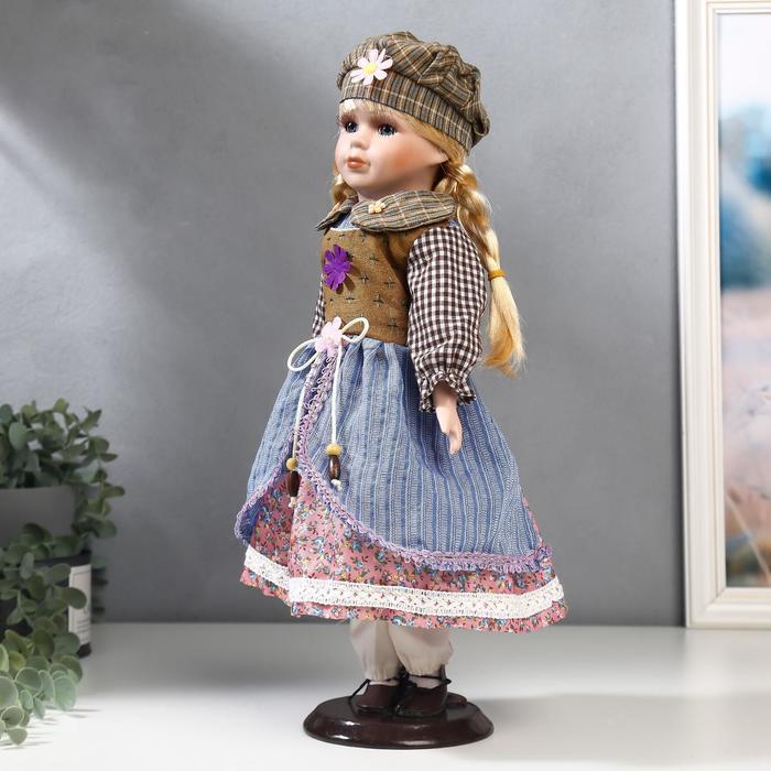 Кукла коллекционная керамика "Блондинка с косами в многослойном платье" 40 см
