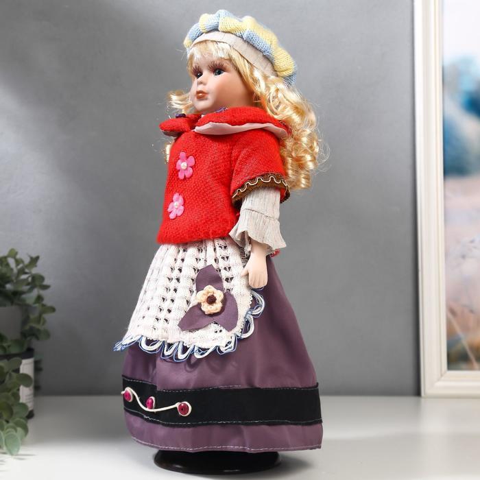 Кукла коллекционная керамика "Блондинка с кудрями, алый свитер с цветочками" 40 см