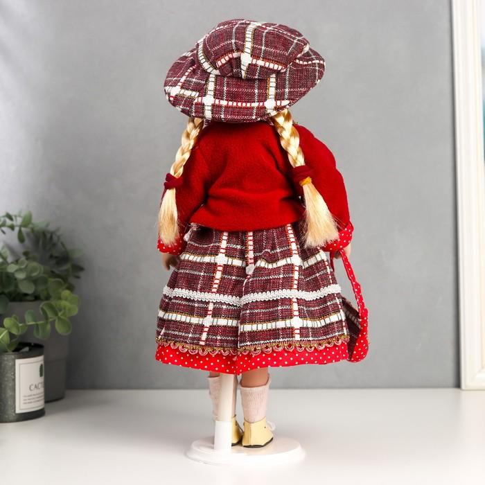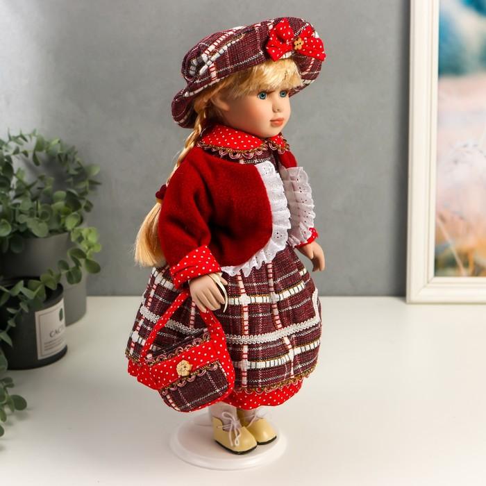 Кукла коллекционная керамика "Инга в красном, платье в горох и клетку"" 40 см