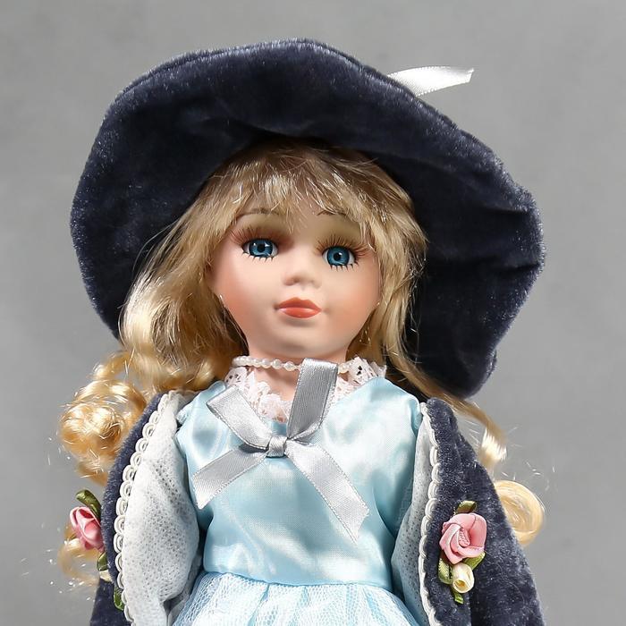 Кукла коллекционная керамика "Ирина в голубом платье и сером пиджаке" 30 см