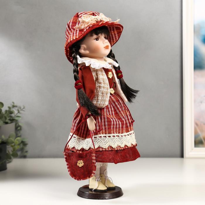 Кукла коллекционная керамика "Иришка в красном платье в клетку" 40 см