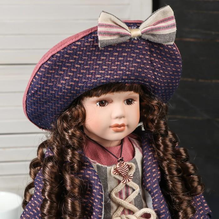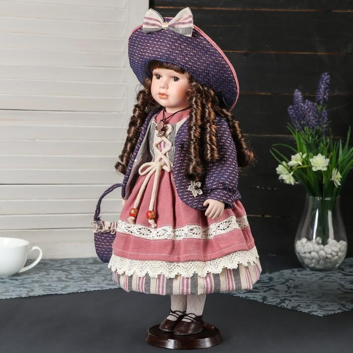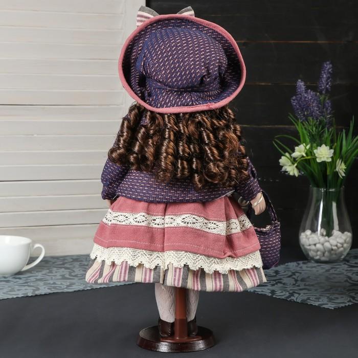Кукла коллекционная керамика "Катерина в платье цвета охра, в шляпке и с сумкой" 40 см