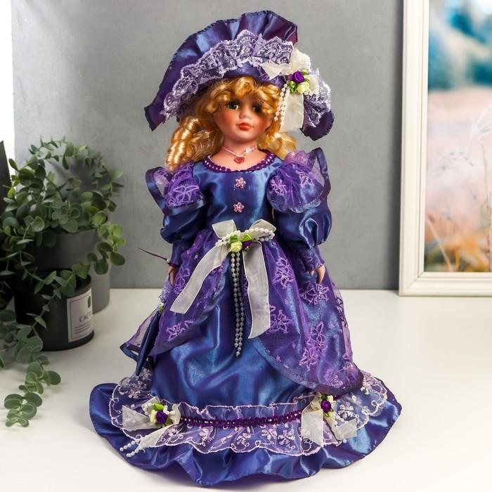 Кукла коллекционная керамика "Леди Лилия в ярко-синем платье с кружевом" 40 см