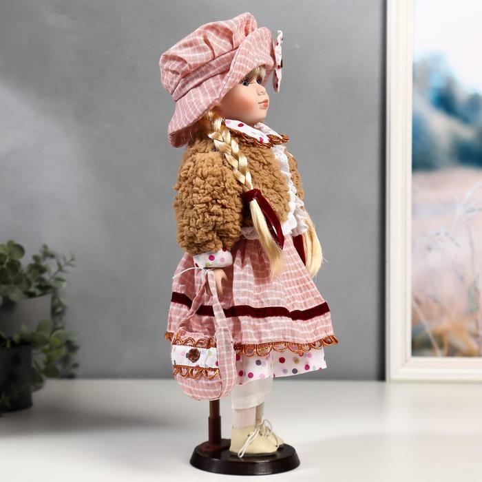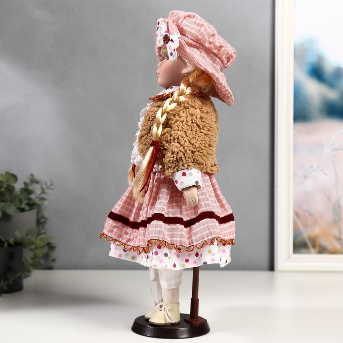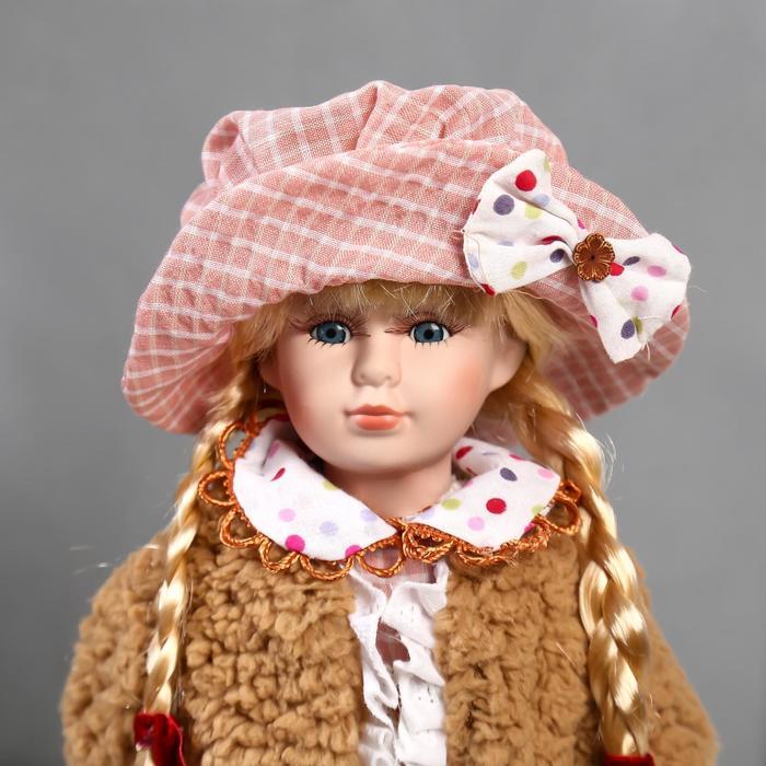 Кукла коллекционная керамика "Лизонька в платье в клеточку" 40 см