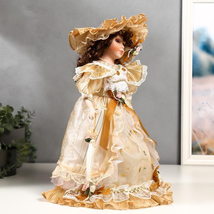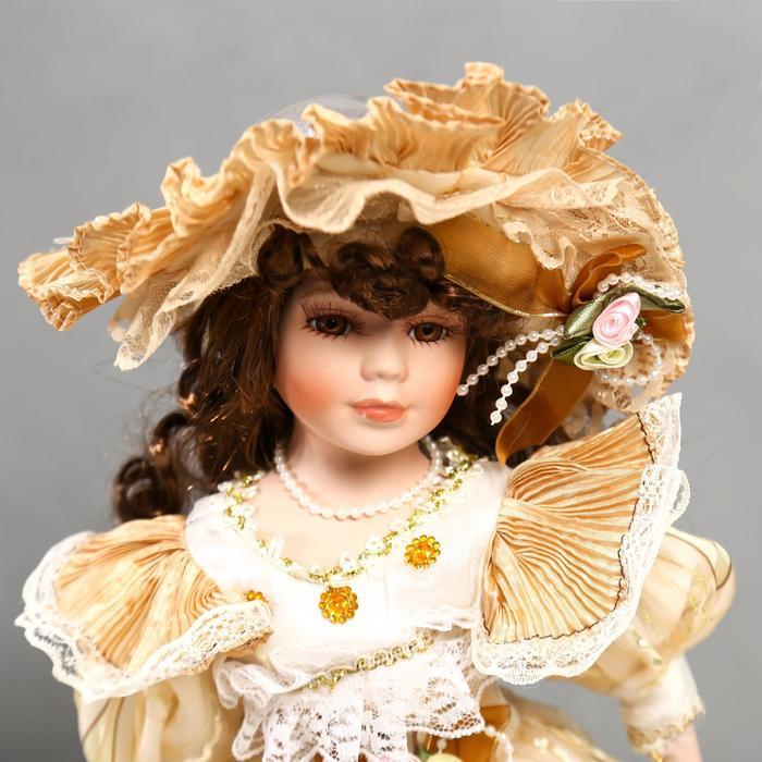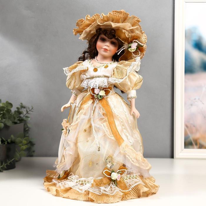 Кукла коллекционная керамика "Мэри в жёлто-кофейном платье" 40 см