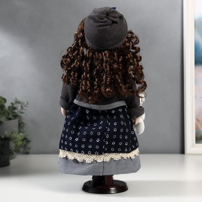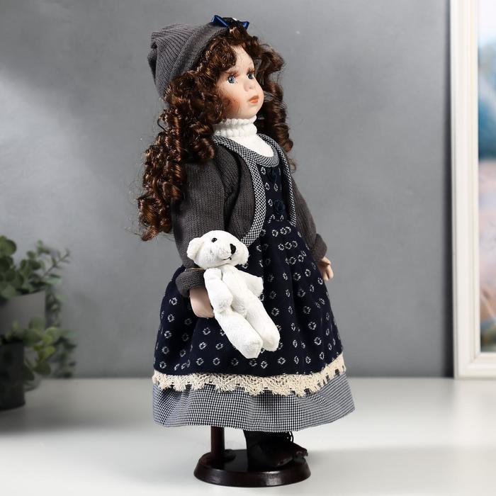 Кукла коллекционная керамика "Настя в синем платье и сарафане в кружочек" 40 см