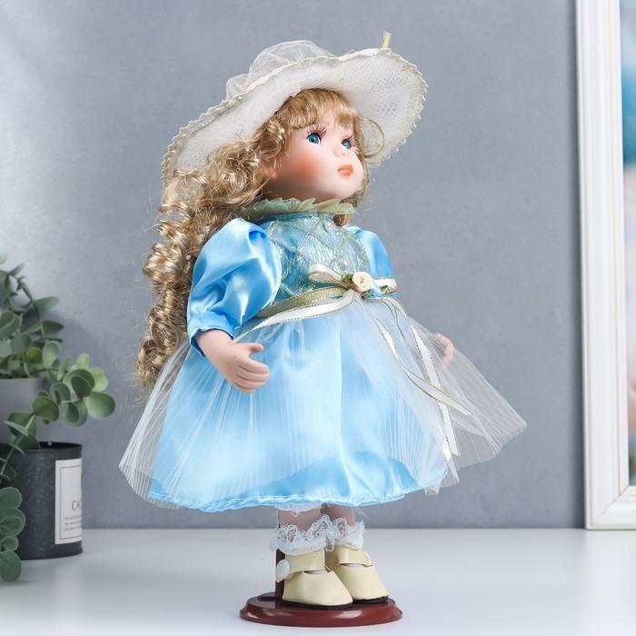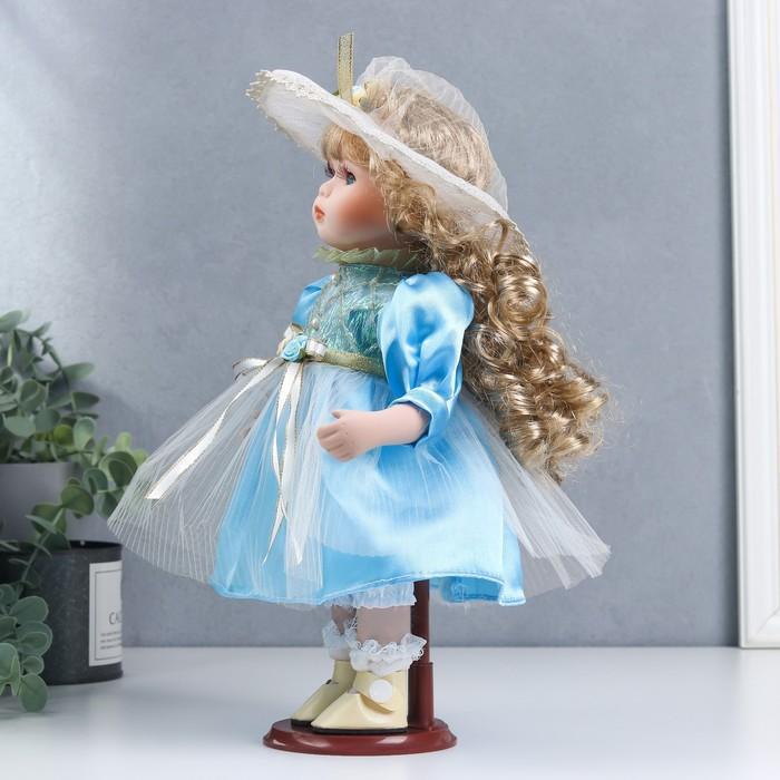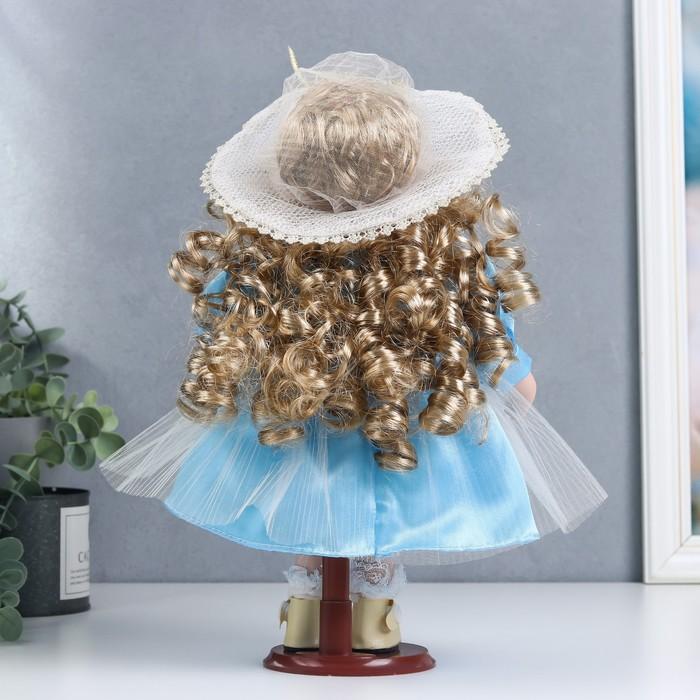 Кукла коллекционная керамика "Наташа в нежно-голубом платье в шляпке" 30 см