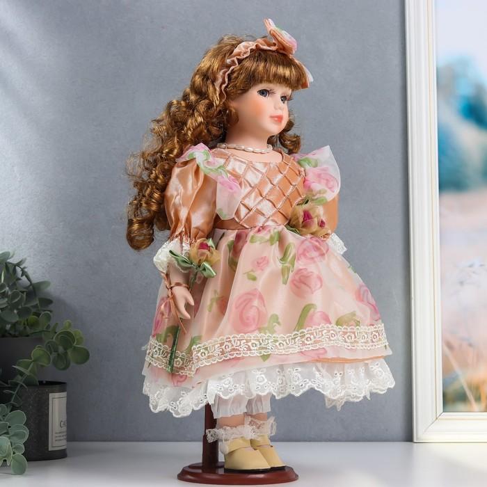 Кукла коллекционная керамика "Регина в карамельном платье, с цветком" 40 см