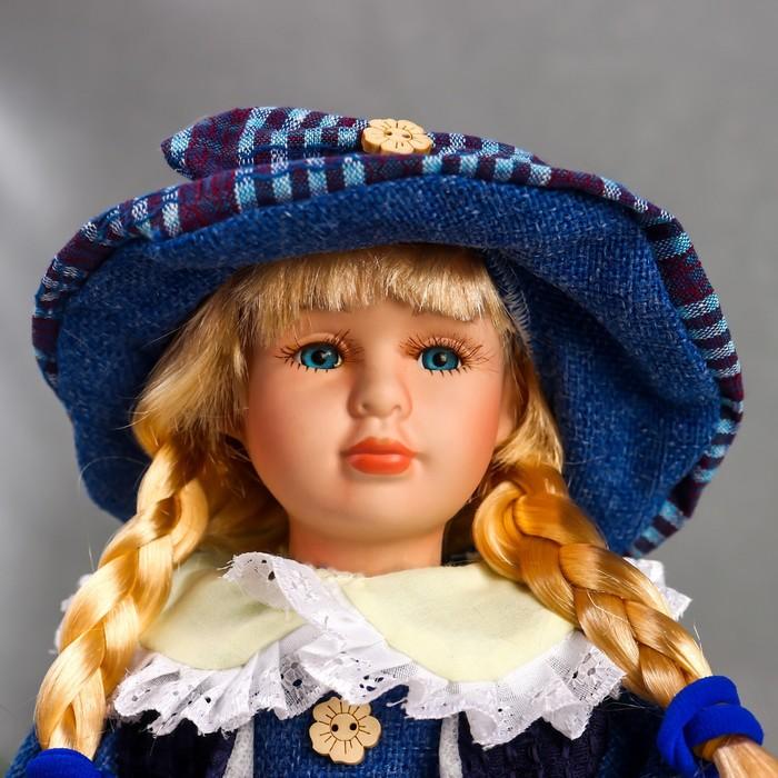 Кукла коллекционная керамика "Сашенька в ярко-синем наряде в клетку" 40 см