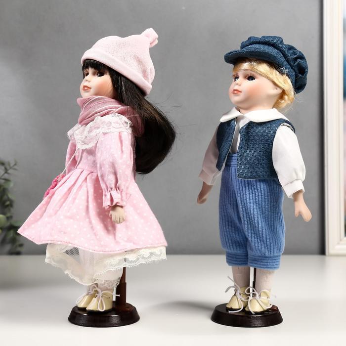 Кукла коллекционная парочка набор 2 шт "Полина и Кирилл в розовых нарядах" 30 см