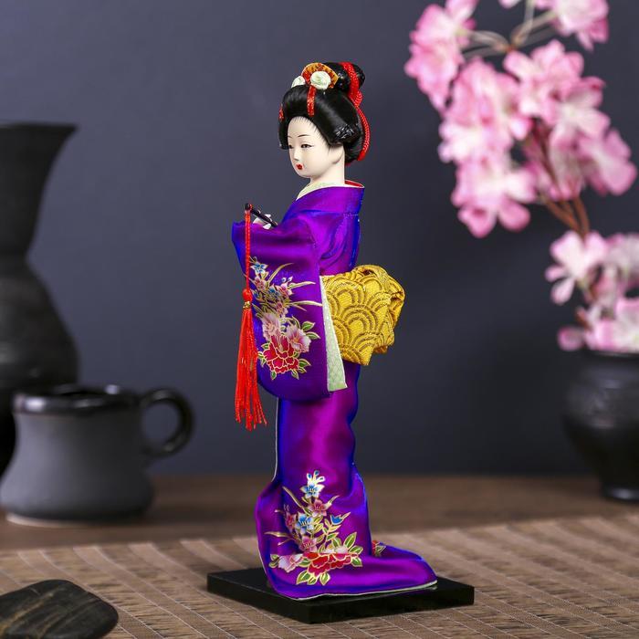 Кукла коллекционная "Японка в фиолетовом кимоно с флейтой" 25х9,5х9,5 см
