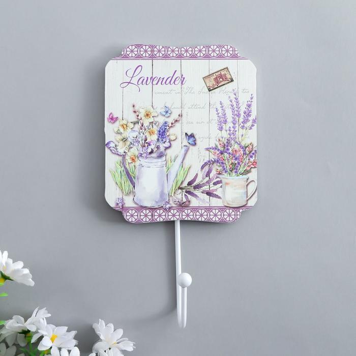 Крючок декоративный дерево "Лейка и кувшин с лавандой" 19,5х11х4,5 см